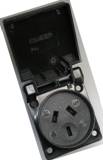 Prise femelle avec contact de protection, modèle australien, 10 A, couvercle à ressort. pour épaisseurs de parois de 1,0 / 2,0 / 3,0 mm. Matière thermoplastique, noir. Disponible aussi avec fixation à cran pour épaisseurs de parois de 1,0 / 2,0 / 3,0 mm (457 KR).
