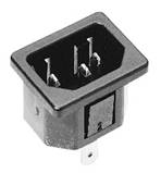 Socle connecteur 70°, 10 A, avec contact de protection, en option raccord à vis ou raccord enfichable 4,8 et 6,3 mm, fixation à cran, pour épaisseurs de parois de 0,7 - 3,5 mm, ajour de montage: 19,6 ± 0,1 mm x 27,2 ± 0,1 mm.