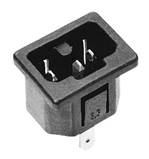 Socle connecteur 155°, 10 A, avec contact de protection, en option raccord à vis ou raccord enfichable 4,8 et 6,3 mm, fixation à cran, pour épaisseurs de parois de 0,7 - 3,5 mm, ajour de montage: 19,6 ± 0,1 mm x 27,2 ± 0,1 mm.