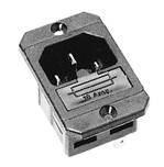 Socle connecteur 120°, 10 A, avec contact de protection, en option raccord à vis ou raccord enfichable 4,8 et 6,3 mm, avec porte-fusible pour faible intensité ø 5 x 20 mm, emplacement intégré pour fusible de réserve, bride longitudinale, écart entre les orifices de fixation 39 mm, fraisés. Matière thermoplastique, noir.