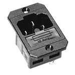 Socle connecteur 155°, 10 A, avec contact de protection, en option raccord à vis ou raccord enfichable 4,8 et 6,3 mm, avec porte-fusible pour faible intensité ø 5 x 20 mm, emplacement intégré pour fusible de réserve, bride longitudinale, écart entre les orifices de fixation 39 mm, fraisés. Matière thermoplastique, noir.