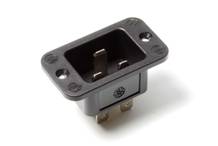 Socle connecteur 70°, 16 A, avec contact de protection, en option raccord à vis ou raccord enfichable 4,8 et 6,3 mm, bride longitudinale, écart entre les orifices de fixation 42 mm, fraisés, forme ovale. Matière thermoplastique, disponible en noir, blanc et gris.