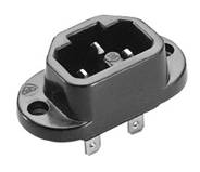 Socle connecteur 155°, 10 A, avec contact de protection, en option raccord à vis ou raccord enfichable 4,8 et 6,3 mm, bride longitudinale, écart entre les orifices de fixation 34 mm, fraisés, forme ovale.