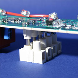 Spécialement étudiées pour l'industrie du luminaire d'éclairage de sécurité. La règlette mâle est à souder sur la platine électronique. Le système de branchement et de débranchement sous tension, donc sans couper le réseau, est breveté.